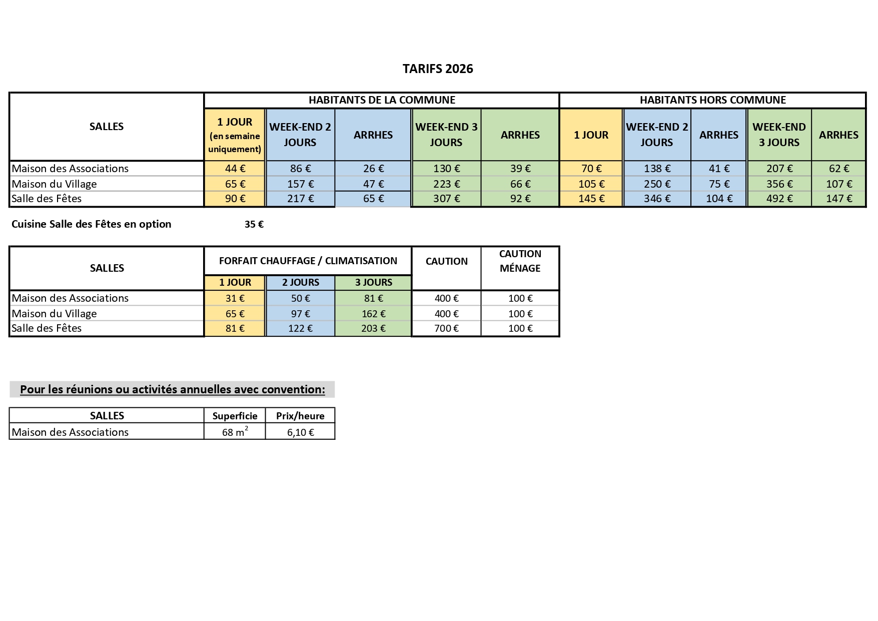 La tarification des salles communales